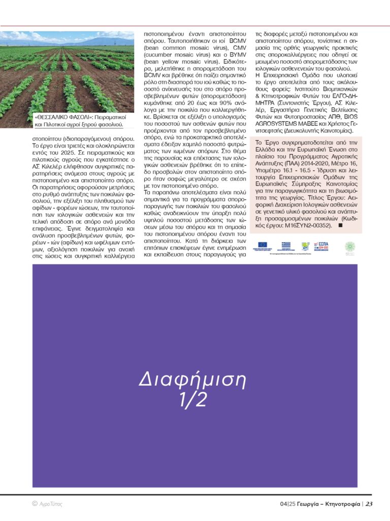 Communication 24 September 2025 / Διαχειριστής / 0 Comments Άρθρο στο περιοδικό Γεωργία-Κτηνοτροφία για το έργο “Θεσσαλικό Φασόλι” Άρθρο στην ιστοσελίδα ypaithros.gr για το έργο “Θεσσαλικό Φασόλι” 24 September 2025Ενημερωτικό φυλλάδιο προγράμματος24 September 2025 Related Posts Communication Παρουσίαση αποτελεσμάτων στο 19ο Συνέδριο της Ελληνικής Επιστημονικής Εταιρείας Γενετικής Βελτίωσης Φυτών 24 September 2025 / Διαχειριστής / 0 Comments Go to Communication Το “Θεσσαλικό Φασόλι” στην Agrothessaly 24 September 2025 / Διαχειριστής / 0 Comments Go to