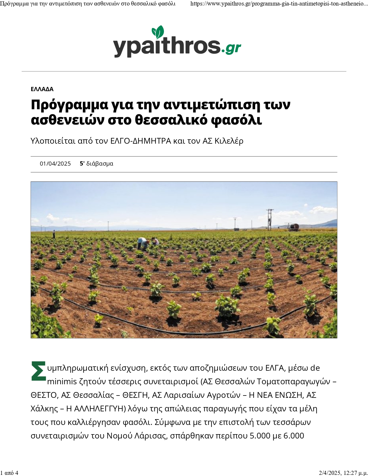 Παρών το έργο “Θεσσαλικό Φασόλι” στην έκθεση Agrothessaly (Λάρισα, 6-9/3/2025). Στο περίπτερο του ΕΛΓΟ-ΔΗΜΗΤΡΑ, μέλη της Ε.Ο. του έργου, ενημέρωσαν το κοινό για τους στόχους του αλλά και για τα αποτελέσματα του.